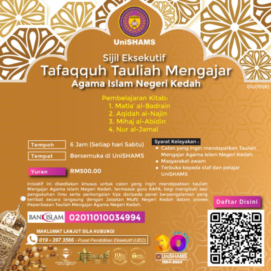 Sijil Eksekutif: Tafaqquh Tauliah Mengajar Agama Islam Negeri Kedah